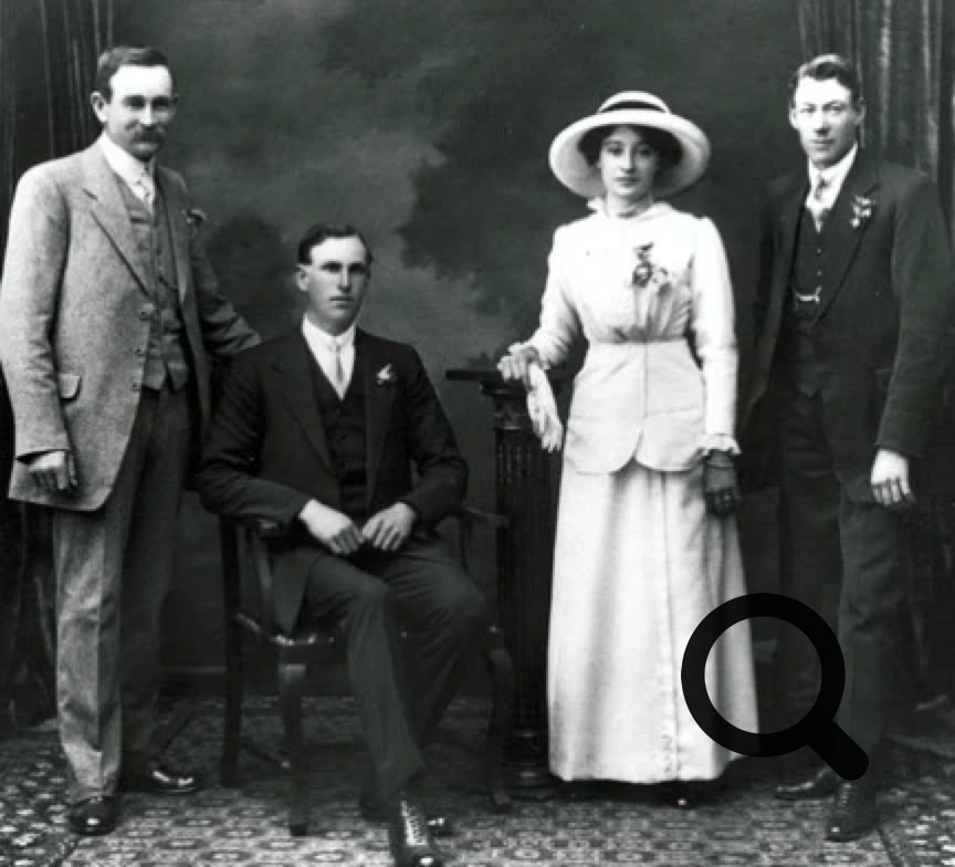 Left to Right: George T Powell (Elsie's Father), Jack Qualtrough, Elsie May Powell, and Arthur Powell? (Elsie's Brother)