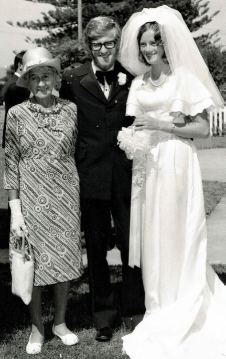 Elsie May Powell (Qualtrough) with her grandson Malcolm and Jillian Martin (Qualtrough) on 30th March 1974 at Swan Hill, Victoria.
