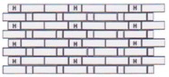 It also allows air to circulate freely around each header brick. reducing the tendency for moisture to penetrate to the inside surface of the wall. It is possible that specially made header bricks were used to span the walls as one such brick was found in the garden, but this has not been confirmed by inspection. The closest known published bond is that of Loudon’s hollow wall which uses a cavity with Flemish bond.