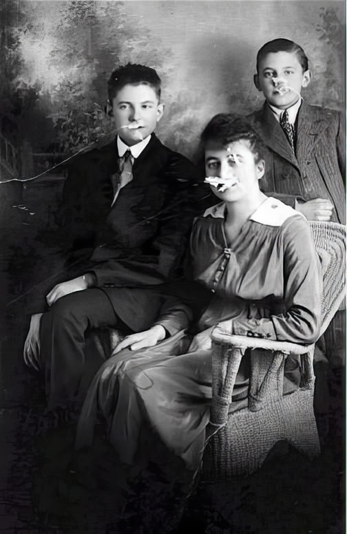 Left: Rhoda Eastham MacDougall, aged 20, shortly after marriage in 1916. With her are her brothers, Harold and Arthur.