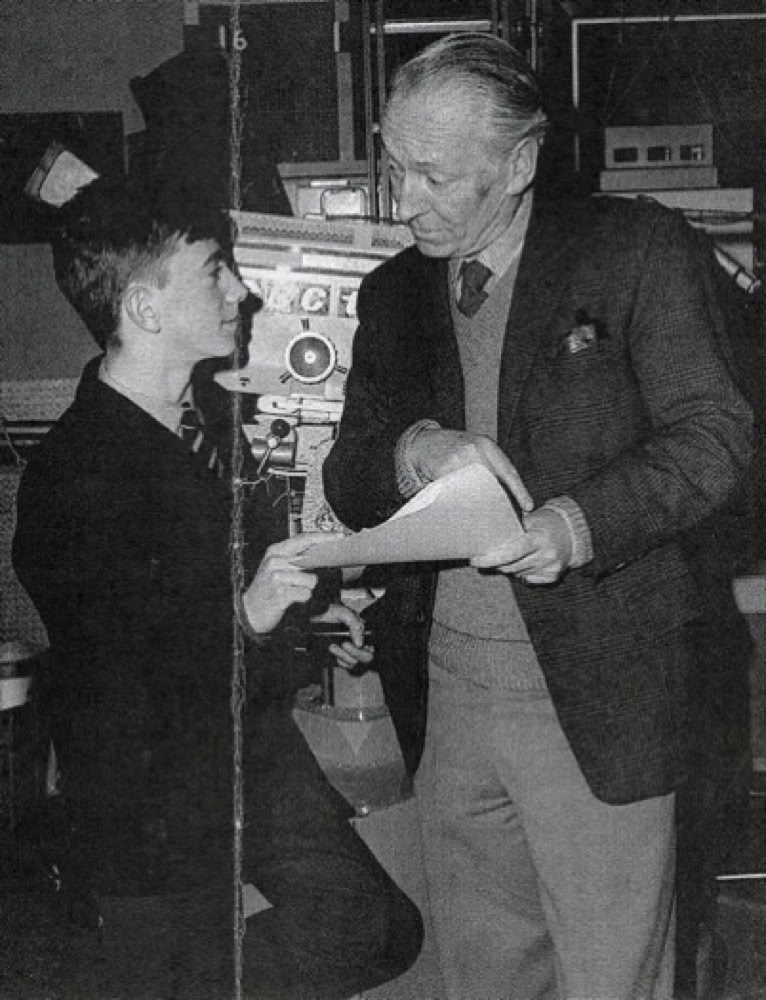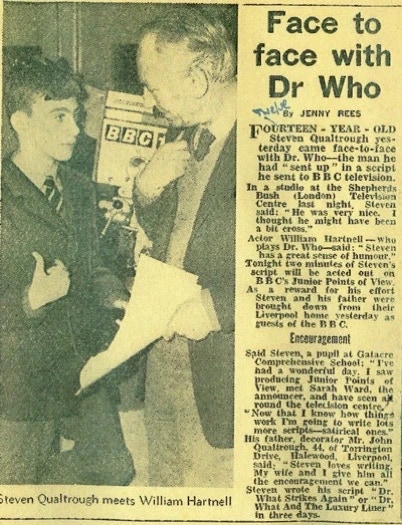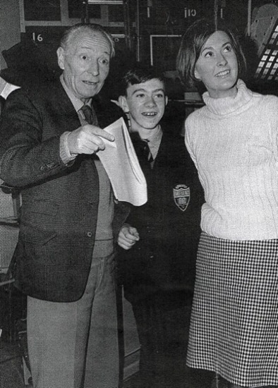 William Hartwall (The first Doctor Who), 12 year old Stephen Qualtrough of Liverpool and Sarah Ward, host of the BBC's 'Junior Points of View' program in 1964.