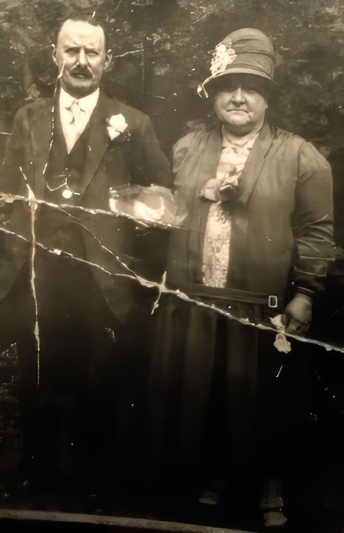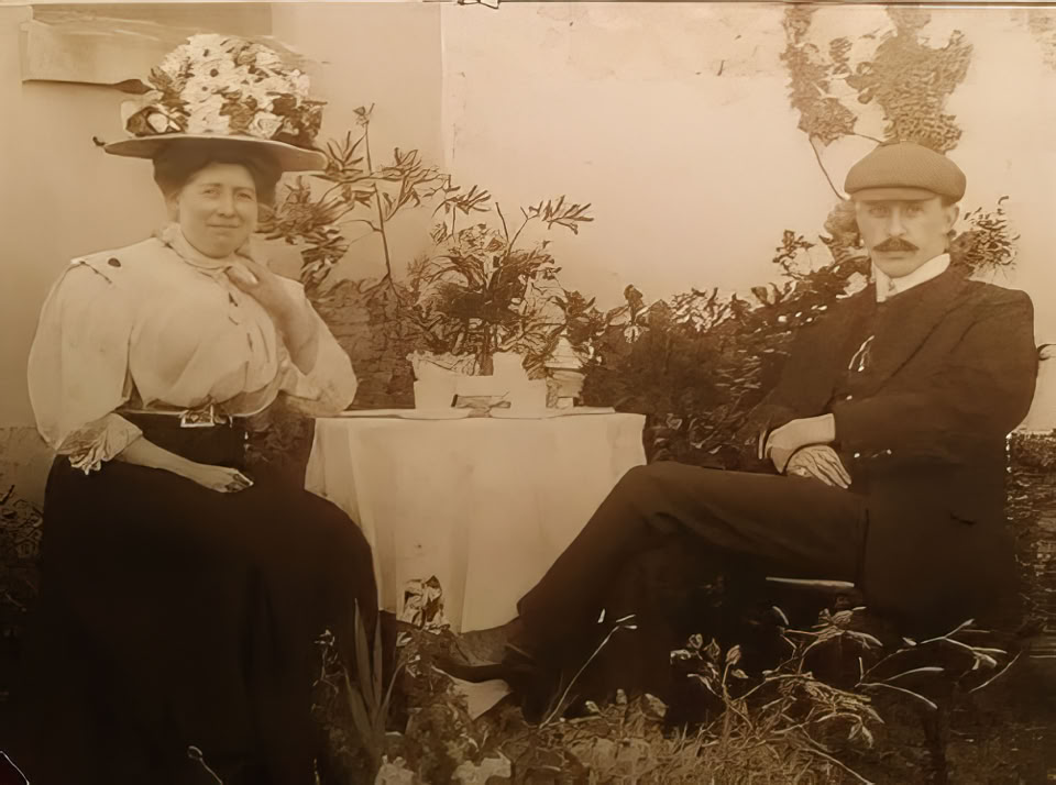 Elizabeth (Lizzie) Qualtrough and her husband John Hulme on the left.