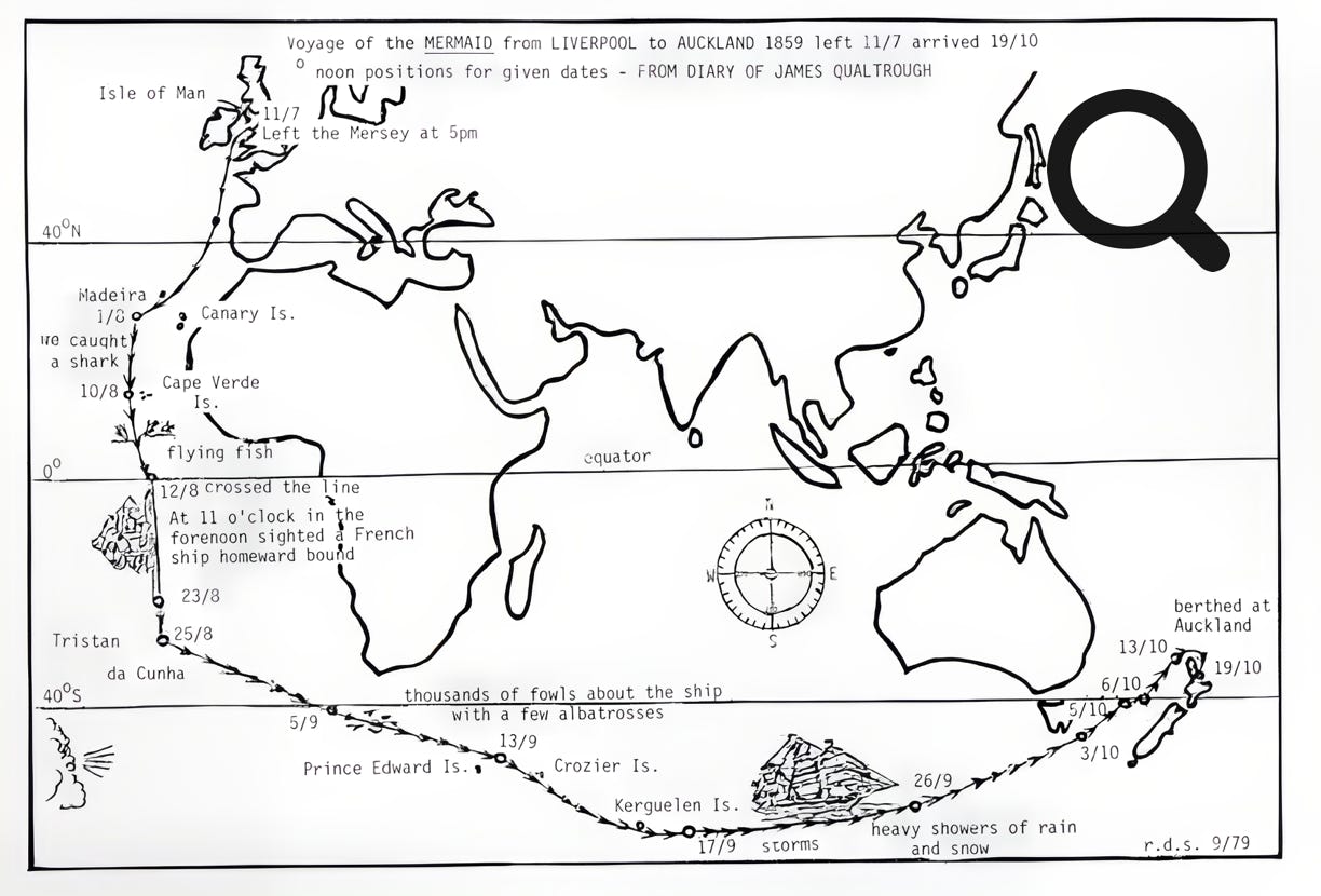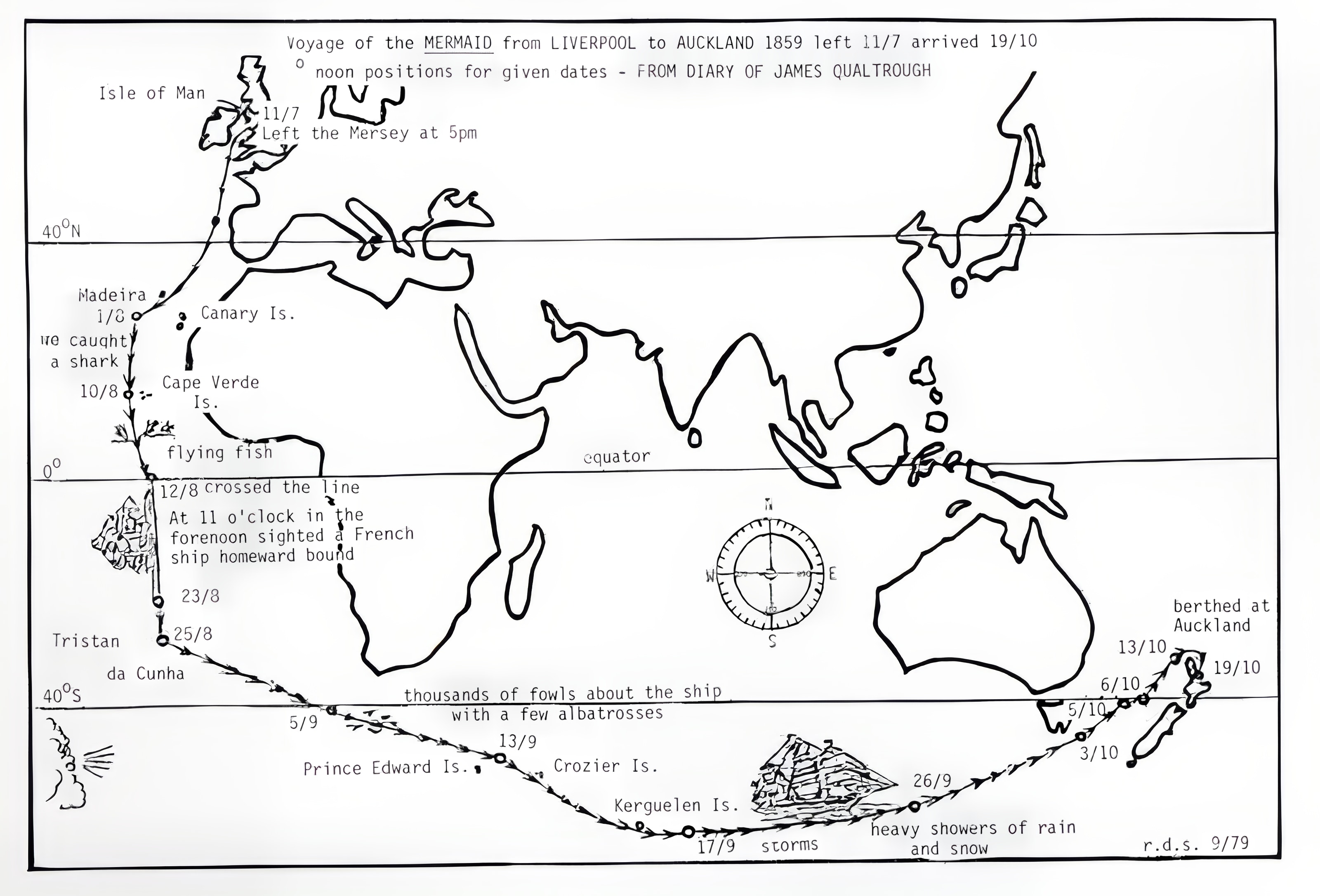 Diary of James Qualtrough, written of board the "MERMAID" which sailed from Liverpool UK, on 11 July 1859 and arrived in Auckland, New Zealand on 19 October 1859.